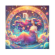 Arte mural metalizado de Virgo. Un hermoso ilustracion aéreo de una mujer Virgo con un espléndido fondo etéreo místico con nubes, estrellas y planetas.