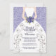Moderna invitación a la ducha de novias con una novia vestida con un vestido blanco con un falso acento floral plateado y un ramo de flores de novia azul morado sobre un elegante fondo purpurina de imitación lavender clásico. Invierta nuestra moda y elegante ducha de novia para volver a ver a un purpurina que hace las veces de pareja y que le ofrece un toque especial. La ducha de novia contemporánea invita a una ducha de novias de primavera, una ducha de novias de verano, una ducha de novia en otoño o una ducha de novia de invierno. Visite nuestra tienda para ver este popular diseño de novias en una variedad de colores.