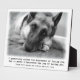 Un monumento a nuestros mascotas que se han ido de esta tierra pero están vivos en nuestros corazones. Un espléndido perro pastor alemán descansa. Con un hermoso acabado en blanco y negro, es un impresionante tributo. Un maravilloso regalo de recuerdo para esa persona especial que perdió a ese mascota especial. Mantenga la placa tal como está o personalice con su propio nombre de mascota u otra información que desee incluir.