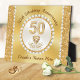 Hermosa placa personalizada para el 50 aniversario. Puedes TRANSFERIR este diseño a más de 1000 amigos y familiares como regalo de aniversario de bodas número 50. Regalos únicos de aniversario de 50 años para padres, familiares y amigos. Esta placa de caballete se sostiene sola. No es necesario colgar en la pared, a menos que lo desees. Hermosos diseños en forma de corazón dorado con diamantes y perlas, con borde dorado brillante y centro de satén blanco apagado. El número 50 está adornado con oro y diamantes. Oh, qué bonito. Regalo de aniversario de 50 años para tía y tío también.