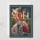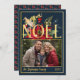 Diseño simple de foto familiar elegante con hoja de papel de aluminio real "Joyeux Noël" (Feliz Navidad) con diseño floral de poinsettia con una sola foto rectangular Diseño de vacaciones de Navidad. La parte posterior presenta un patrón de repetición de poinsettia. Todas las áreas doradas son falsas (gradiente dorado creado digitalmente) con la excepción de las plantillas de nombre y año. Esas son de impresión de un solo color dorado mate. Este diseño está disponible tanto para impresión como para descarga digital, pero también está disponible en una versión de impresión de papel de aluminio dorado real a través de una compra por separado en nuestra tienda.