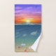 Hermosa salida del sol del océano, conchas marinas con perlas y tortugas marinas nadando Toallas. Ideal para todos.