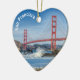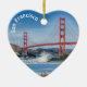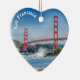 El hermoso puente Golden Gate en San Francisco sobre un adorno en forma de corazón. Dos fotografías diferentes con el icónico puente y el horizonte del centro.