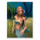 Hermosa sirena de fantasía sobre un fondo oceánico azul
