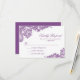 Hermosa tarjeta RSVP de boda de encaje de lavanda