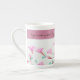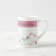 Diseño floral de color agua rosa china tazas de café con un toque de chocolate y verde azulado. Personaliza con tu mensaje especial.