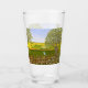 Un vaso con una hermosa imagen de un paisaje natural: un pájaro posado en una cerca desgastada, flores silvestres creciendo alrededor de la cerca, un agricultor en un tractor, trabajando su tierra, árboles con hojas y tierras de cultivo con varios colores. El fondo, la imagen y el texto se pueden personalizar. Obra original de W.B.