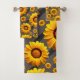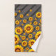 Hermosas flores amarillas sobre fondo gris con rayas negras.