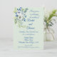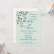 Hermosas invitaciones a bodas florales azules y verdes de menta, un torbellino de flores azules sobre un fondo verde menta e invitaciones fácilmente personalizadas para una encantadora invitación a la boda.