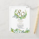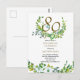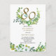 Esta elegante invitación de cumpleaños con hojas verdes y follaje y flores blancas con toques de azul es perfecta para celebrar el 80 cumpleaños de madre o padre, abuelos, colegas o cualquier otra persona. Simplemente edite el texto para adaptarlo a sus necesidades exactas. Tiene fuentes modernas manuscritas y de caligrafía en dorado y negro.