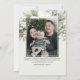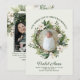 Esta tarjeta de Navidad con anuncio de nacimiento y foto del bebé es perfecta para aquellos que presentan a su pequeño milagro navideño a amigos y familiares esta temporada. Combinar un tradicional anuncio de nacimiento con su tarjeta de Navidad anual es una forma divertida de asegurarse de que su tarjeta se destaque este año. Cuenta con una hermosa corona pintada con vegetación invernal y flores blancas elegantes que rodean una foto destacada de su miembro más nuevo de la familia en la portada, junto con plantillas fáciles de llenar para los datos de nacimiento de su bebé. La parte trasera presenta una pintura de follaje invernal que coincide con una plantilla de foto perfecta para mostrar a su nueva familia. Escriba un breve mensaje de alegría, o déjelo como está, y agregue el nombre de su familia para un saludo navideño perfecto.