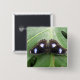 Este impresionante botón muestra una fotografía de una hermosa mariposa tropical. Esta especie es principalmente negra con hermosos manchas azul brillante iridiscente en cada ala. La fotografía fue tomada usando macrofotografía para obtener un resultado asombrosamente detallado.
