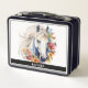 Hermoso caballo con flores caja de almuerzo personalizada con una imagen diferente en la parte delantera y trasera, edite el nombre usted mismo cuando usted pide.