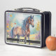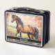 Hermosos caballos de bahía personalizan la caja de almuerzo con una imagen diferente delante y atrás, edite el nombre usted mismo cuando usted pide.