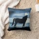 Una hermosa almohada de caballo y luna, una pieza de acento para cualquier habitación. Tiene tonos azules.