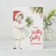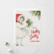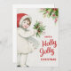 Hermoso chica de Navidades con un paquete de Navidades verdes, bayas y holly.
