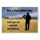 Los cetreros viven para cazar con sus aves. Una silueta de un cetrero con su ave. Las palabras Es un día hermoso Salgamos y matemos algo que los rodea.