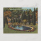 El hermoso jardín de Savannah es un ilustracion vintage de The Tichnor Brothers. El jardín incluye un estanque reflectante y flores amarillas y rojas con árboles verdes y cielo azul como fondo.
