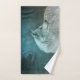 Toalla de mano con una fotografía de un bello lobo gris peludo y esponjoso. En el fondo hay un bosque oscuro con árboles. Vibra mística mágica.