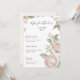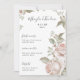 Hermoso Pastel Soft Peach Rubor Watercolor Rosas Floral Blooms y los Nombres de Novia y Groom en Bonito Script con menú Boda Pale Peach Back.