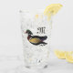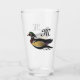 Un bonito pato de madera nadando. El ilustracion se hace desde el lateral con una ola de agua negra procedente de las plumas de cola.