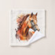 Toalla con un bonito ilustracion. Cabeza de caballo de color castaño de cobre y cuerpo superior. Con parches de acuarela detrás.