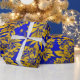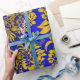 Hermoso patrón floral para papel de envoltura de regalo en imágenes repetitivas internacionales Klein Blue y oro.