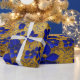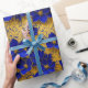 Hermoso patrón floral para papel de envoltura de regalo en imágenes repetitivas internacionales Klein Blue y oro.