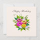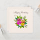 Hermoso ramo de flores coloridas de moda en tarjeta de felicitación de cumpleaños marfil. Flores de tonos rosa, dorado rosa y amarillo. El texto se puede personalizar.