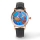 Este reloj muestra dos medusas con largos tentáculos coloridos mientras nadan a través de un hermoso agua azul. Esta fotografía fue tomada por mi hijo, David Mann.