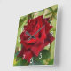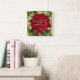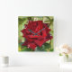 Hermosa rosa roja en el reloj de pared de hojas verdes