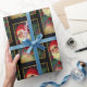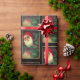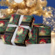 Retrato de navidades Santa Claus en vivos colores de árbol de Navidad rojo blanco y verde, situado dentro de fronteras doradas