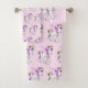 Toalla con la imagen de un unicornio con grandes ojos azules, alas rosas y una forma y cola de arcoiris. Kawaii lindo.