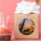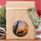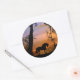 Un pegatina de caballo bonito con un caballo en paro, un roble con una valla campestre. Un divertido entusiasta del equino como pegatina. ¡Bienvenidos a un país de caballos!
