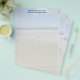 Flyer filler paper with Florida birds and beaches background images. Size 8.5 x 11, with lines on both sides, the paper can be personal stationery for writing to friends, letterhead for a business, or add it to a binder. Side one has blue, printed text at the top, which can also be removed. The background image is a heron walking along the beach at low tide. Side two has no text, but it is lined and the background image is a flock of birds on the beach. This is flyer paper and it comes in glossy or thin matte. We offer the same design on letterhead paper, which is more expensive.