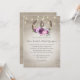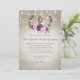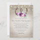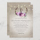 Agradable herradura, morado y rosa floral, acuarela rústica invitación a una boda con brillantes luces de cuerda.