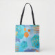 Resumen hexágono azul acuático pintado en bolsa de tetas, hace el tote de la playa, tote de almuerzo, tote de compras, tote de comestibles y ayuda a salvar el medio ambiente.
