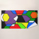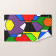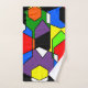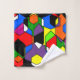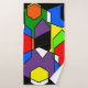 Este conjunto de toallas tiene un diseño Bauhaus de hexágonos superpuestos en colores primarios y secundarios.