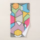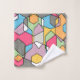 Este conjunto de toallas tiene un diseño inspirado en Bauhaus de hexágonos superpuestos en colores pastel.