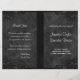 © Sunny Mars Designs - Floral Hibiscus: Black on Chalkboard Bi-Fold Wedding Program - Elegante, moderno, elegante, elegante, de moda, personalizado de moda boda gótico plegado plantilla de folleto con hermoso y magnífico diseño de hibiscos tropicales florales negros de Gótico contra un fondo negro de pizarra.