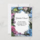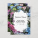 Anuncie su matrimonio fiesta de jardín privado o la fuga secreta con la elegante Invitación de arcos de flores de Hydrangea. Esta invitación personalizado florida y bonito de fumigación presenta una fotografía floral de cerca de flores azules, rosas y blancas de flores de horangea con hojas verdes.