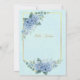 Envía a tus invitados este hermoso marco de color dorado que tiene dos ramos de hortensias azules sentados en las esquinas opuestas sobre un fondo azul pálido. PERSONALIZABLE, sólo rellena todos los detalles o hazme saber y puedo personalizarlo para ti. Puede cambiar el texto, el tipo de letra, los colores de fuente. Si necesitas ayuda, por favor envíame un mensaje y me gustaría ayudar.