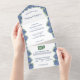Hydrangeas Watercolor All In One Wedding Invite es una hermosa acuarela con hortensias azules y vegetación. Perfecto para un boda de primavera/verano. Puede personalizar seleccionando "Personalizar esta plantilla" o si desea realizar una personalizar aún mayor de este diseño, seleccione "Editar usando la herramienta Diseño". Si necesitas artículos coincidentes, por favor contáctame.