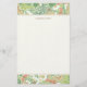 Papelería personal muy llamativa, enmarcada con hierbas silvestres artísticas: amaryllis, manzanilla, bayas sin madurar, algunas mariposas y tu opción para personalizar. El cuerpo del papel es una falsa impresión de pergamino recortada arriba y abajo con un margen plateado.
