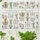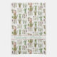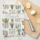 Toallas de cocina con té de hierbas. "Amigos de la bienvenida" es el texto de la muestra en una franja blanca bordeada de rosa rosa. Las hierbas verdes y los tallos se mezclan con las teteras punteadas en este patrón de bonito, impreso en un solo lado.