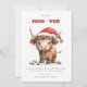 Highland Cow New Home Address Feliz Navidad. Disponible digitalmente e impreso. Trato festivo para sus vacaciones combinadas y su invitación en movimiento, con este divertido diseño con una dulce vaca de montaña en su sombrero de Papá Noel y personalizar su saludo y nuevos detalles de dirección debajo.