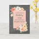 Bonito y cuidadosa tarjeta de saludo para su hija en el cumpleaños de la ley con flores de primavera rosa y blanco melocotón, patrón rústico de pizarra y texto de estilo con letras a mano.