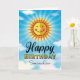 Haga que su yerno se sienta especial en su cumpleaños enviándole este alegre y sonriente sol decorativo amarillo y naranja flotando en el cielo azul con nubes. El texto interior dice "El sol empezó a brillar un poco más el día en que naciste".