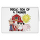 ¡El hijo orgulloso de un granjero amará estas camisetas del hijo del granjero lindo, monos, las tazas, las tarjetas, los botones, los pegatinas, las bolsas de asas, y otros artículos que ofrecen un granjero, un granero rojo del heno, una vaca, un cerdo, ovejas, y un sol sonriente!