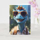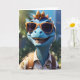 Funny personaje de dinosaurio usando gafas de sol, parece que están a punto de salir en una aventura. En blanco para tu mensaje personal y puedes añadir tu propio saludo al frente.